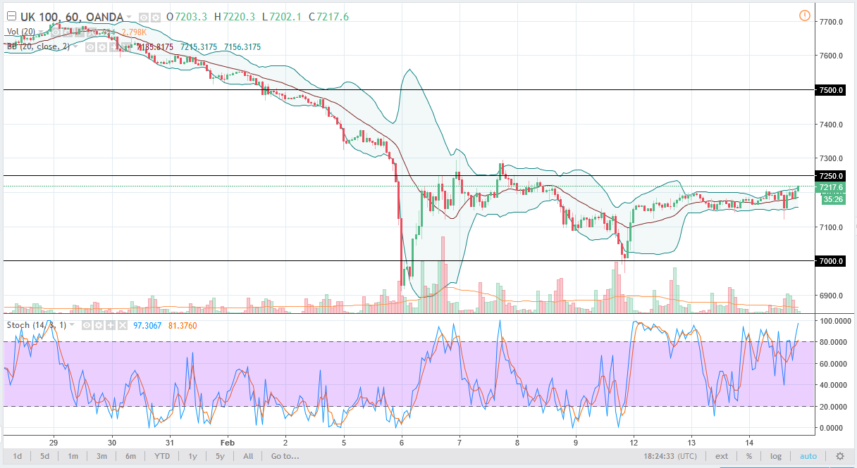 The FTSE 100 went sideways overall during the trading session on Wednesday, as we continue to see the market trying to build a bit of a base. I think that given enough time, we will break out to the upside, but we also have to deal with the 7250 level first before we can continue further.