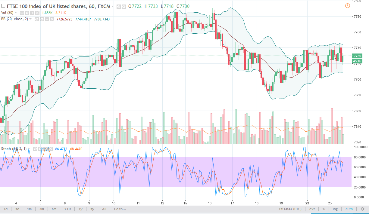The British index has gone sideways during most of the session on Tuesday, as traders continue to ponder the idea of the 7700-handle offering support. Longer-term, the market has been very bullish, so my base case is that we do continue to see buyers.