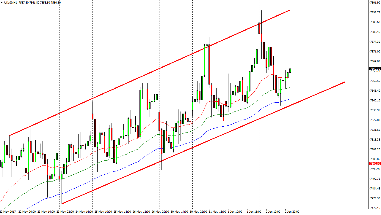 The FTSE 100 had a negative session on Friday, dropping down to the 72-hour exponential moving average. We also tested the bottom of the uptrend in