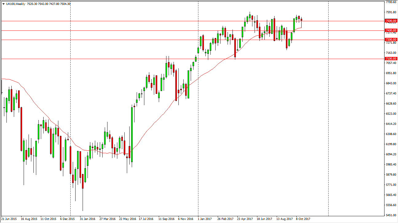 The FTSE 100 fell during most of the week, breaking well below the 7450 handle, before turning around and bouncing enough to rally above the 7500 level.