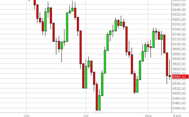 FTSE initially tried to rally during the course of the session on Thursday, but found enough resistance at the 6640 level to turn things back around and form a shooting star. The shooting star looks as if it is trying to tell us that the market is trying to drift down to the 6500 level. Sooner or later though we should find supportive candles that we can start buying. On the other hand, if we can break above the top of the shooting star, we are buyers as well. We have no interest in selling this market right now.