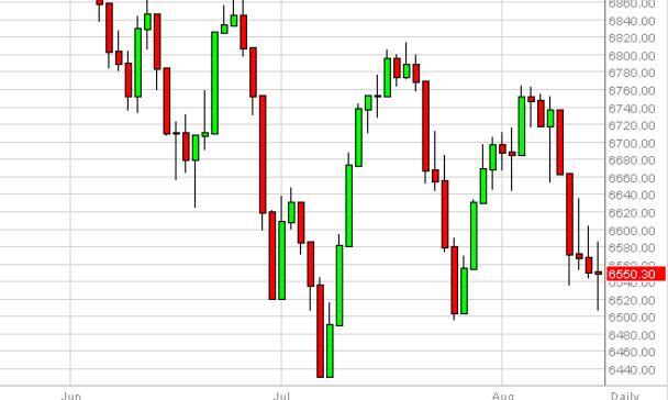 The FTSE went back and forth during the day on Monday, essentially forming a very neutral candle. With this, we believe that there is a significant amount