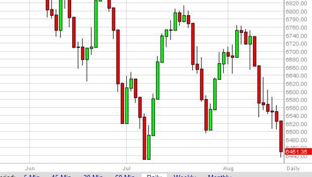 The FTSE fell hard during the course of the day on Wednesday, but found a bit of support near the 6450 level. Because of this, the market looks like it could bounce from here and therefore we are willing to buy supportive candles as they appear. We have no interest in shorting this market, at least not until we break down well below the 6440 handle, and quite frankly would probably even wait until we get below 6400 as well. We believe that a bounce is overdue, and therefore that is exactly what we are waiting to see.