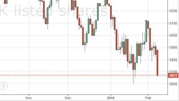 The FTSE fell rather hard during the course the day on Monday, as most stock markets around the world did the same. The 5700 level was broken, but we