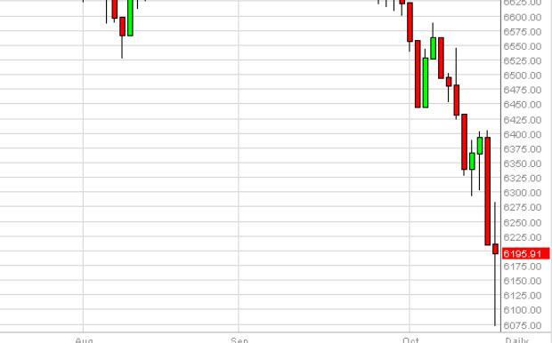 The FTSE as you can see went back and forth during the course of the day on Thursday, showing quite a bit of volatility. That volatility should continue, but it looks like we are trying to find some type of support below. We feel that the 6000 level below will be a bit of a floor, as we are most certainly oversold. However, we are not comfortable buying this market until we get above 6400 and at that point in time recognize that it would be a choppy affair going higher. This point time though, we think there are safer markets out there to be involved in.
