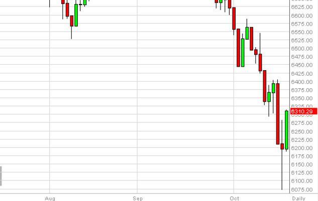 The FTSE as you can see broke higher during the course of the day on Friday, clearing the top of the hammer like candle from Thursday. That being the case, we feel that the market could go higher from here, but we need to clear the 6400 level to feel confident about the positive momentum. That’s because the market would not only break above the next high, but would also break above the top of a massive hammer from the weekly chart as well. With that, we would be very bullish. On the other hand, we think pullbacks could be used as buying opportunities as well.