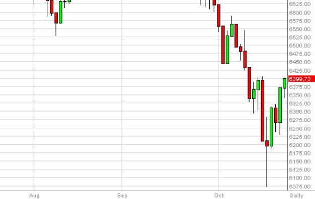 The FTSE initially fell during the course of the day on Wednesday, but bounced enough to form a hammer and pressed up against the 6400 level. Because of this, we feel that a break above 6400 is a signal to start buying, as the market would then head to the 6600 level given enough time. We believe that the FTSE is trying to form some type of base to go higher, so on that move we would be fairly confident. Regardless though, even if we pullback from here we believe that there will be buyers below, and supportive candles would have us going long.