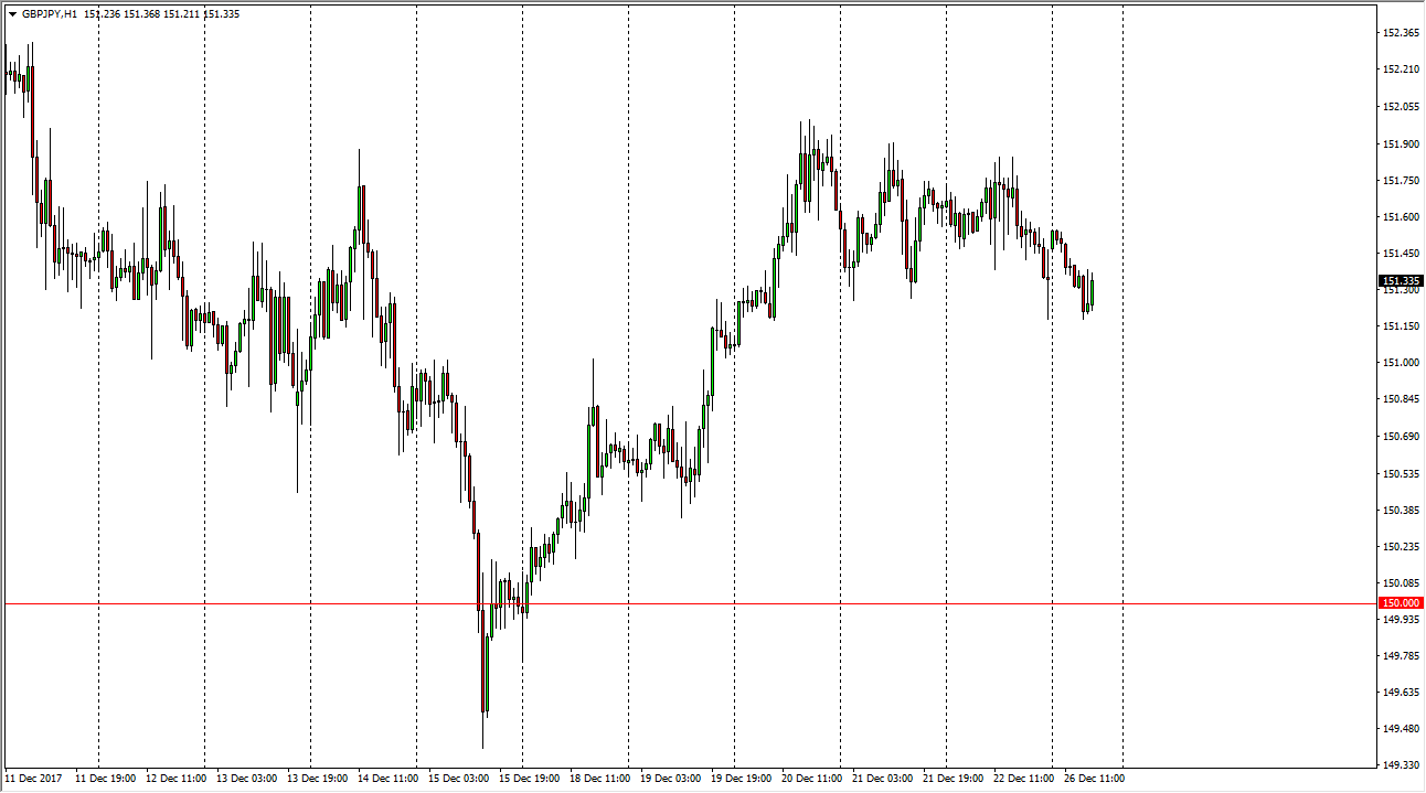 The British pound drifted a bit lower against the Japanese yen during the trading session on Tuesday, reaching down towards the 151.25 level. However, at the end of the day there is almost no volume in this market, so I’m not overly concerned as to what happened. I think that if the market pulls back lower from here, it will eventually be a nice buying opportunity that we can take advantage of, with the 150-level looking very likely to be the “floor” in the market. If we can stay above that level, I am only buying this pair, but I also recognize that with this type of marketplace, it makes sense to buy slowly and then add as it works out in your favor.