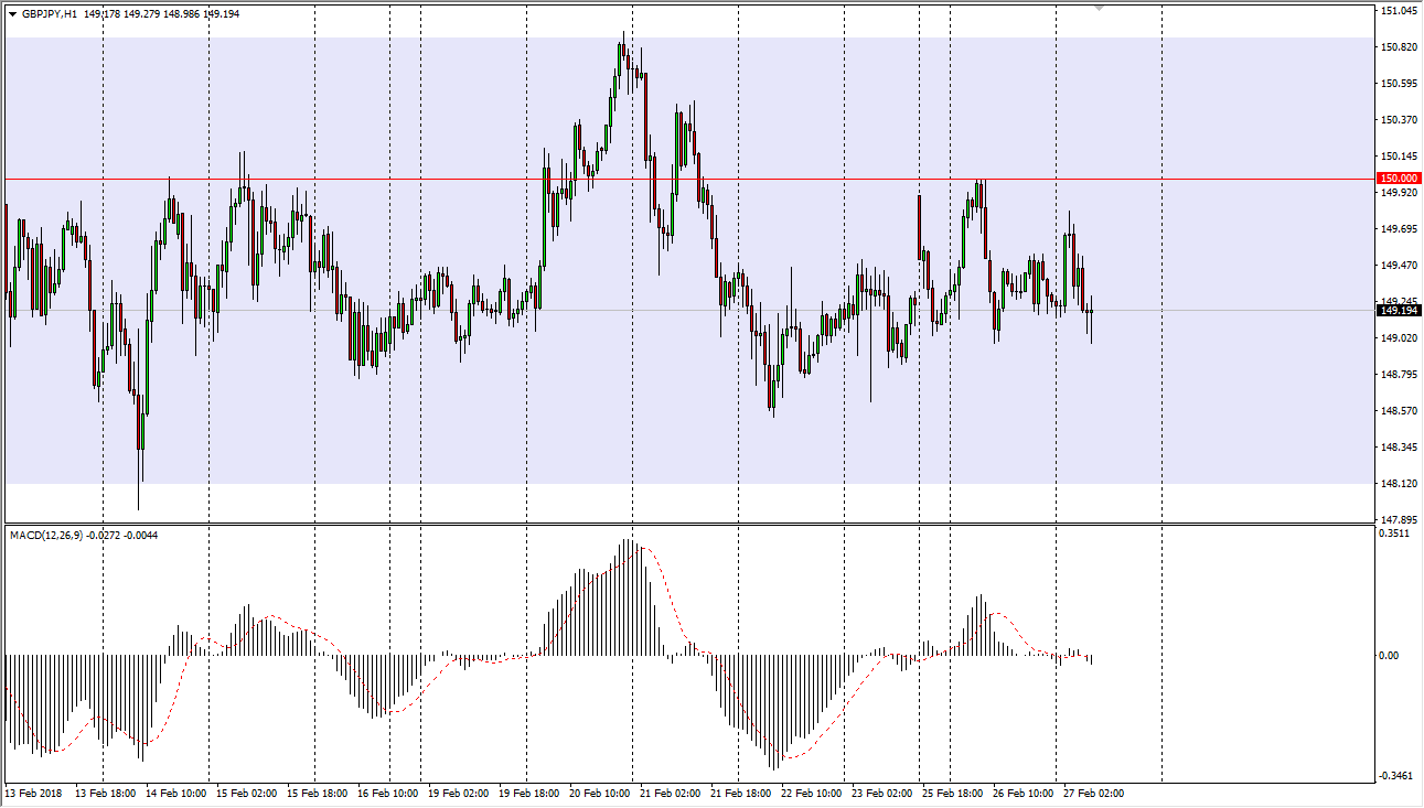 I believe that we are currently in a 300 pips trading range, with the 148-level underneath is massive support, while the 151 level above is massive resistance. I think if we can break above the 151 handle, I think that the market then goes looking towards the 155 level. Alternately, if we break down below the 148 handle, the market goes down to the 145 level. Ultimately, I think that between now and that breakout, you will probably be best served either staying on the sidelines or trading short-term charts in a back and forth manner, recognizing that these levels will have a massive influence on where the market goes.