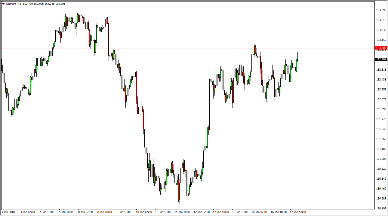 The British pound has been very noisy during the trading session on Wednesday, as we reached towards the 153 handle again. This is an area that I am paying a lot of attention to.