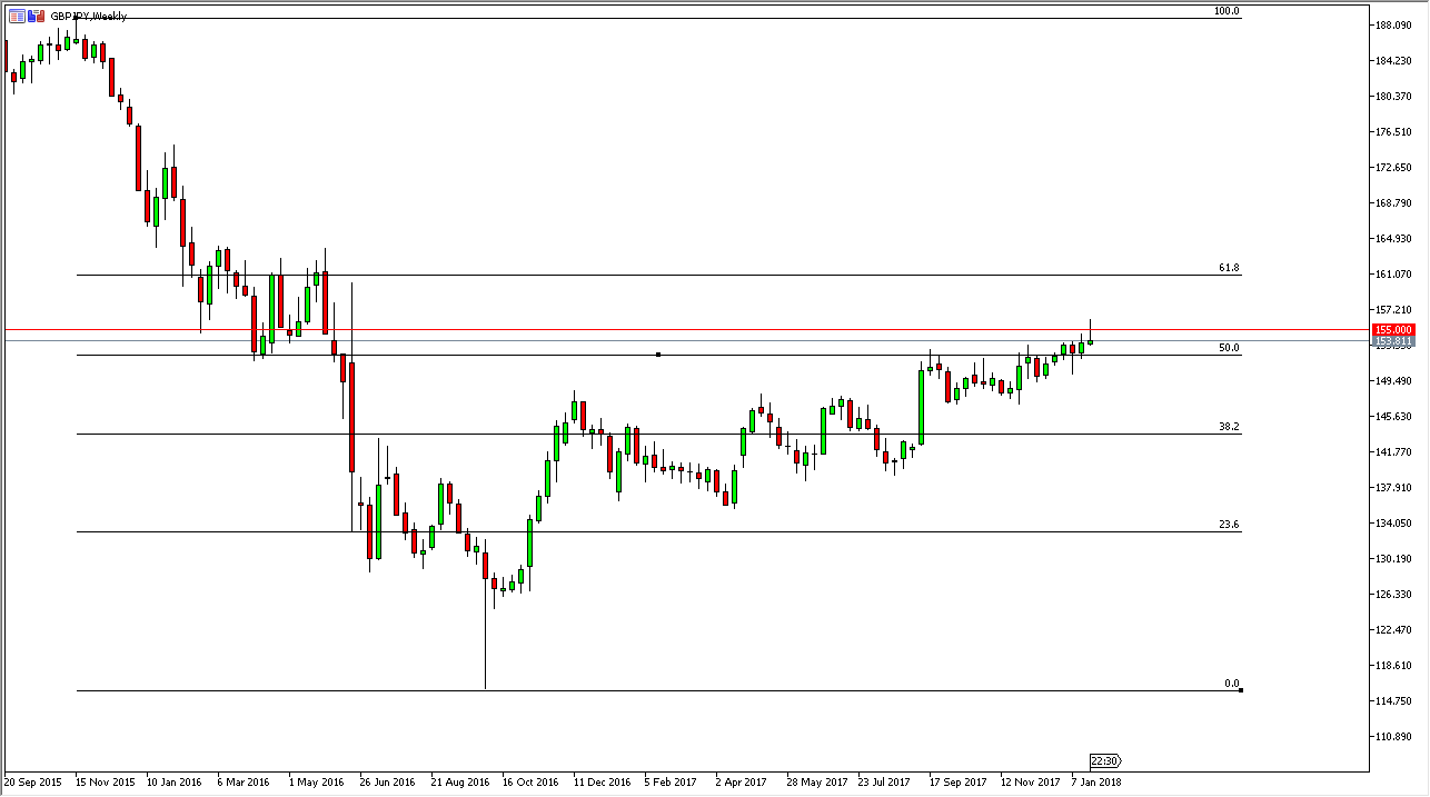 The British pound initially tried to rally against the Japanese yen during the week, and even broke above the 155 handle. However, by the end of the week we formed a significant shooting star, showing serious trouble.