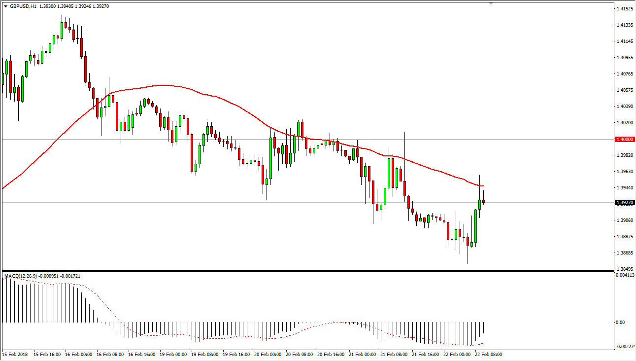 The British pound bounced a bit during the trading session on Thursday, reaching towards the 50 EMA. I believe that the hourly chart looks as if it is ready to start selling off again, and I think that the 1.40 level above is a significant resistance barrier. If we can break above the 1.40 level, then I would be convinced to start putting money to work. Otherwise, I think we have some grinding to do, perhaps trying to build up enough momentum. I recognize that the US dollar will react mainly to what’s going on in the US treasury markets, so it’ll be interesting to see how that plays out. Beyond that, we have the British pound which of course is heavily influenced by the headlines coming out of the negotiations between London and Brussels.