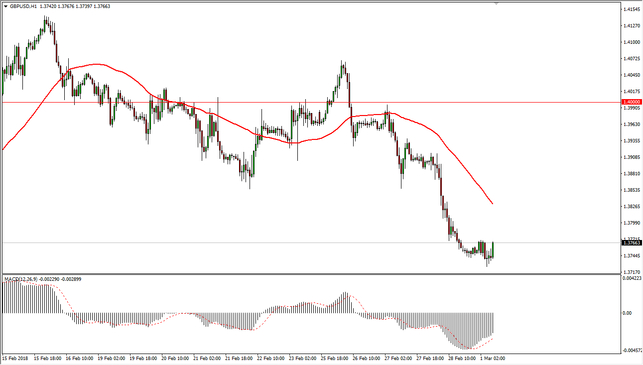 The GBP/USD pair has gone sideways overall, bouncing around the 1.3750 level, showing signs of support. I believe that the market will eventually find buyers, but it’s going to be interesting to see how much noise we find in this area, as I believe the US dollar is ready to roll over.