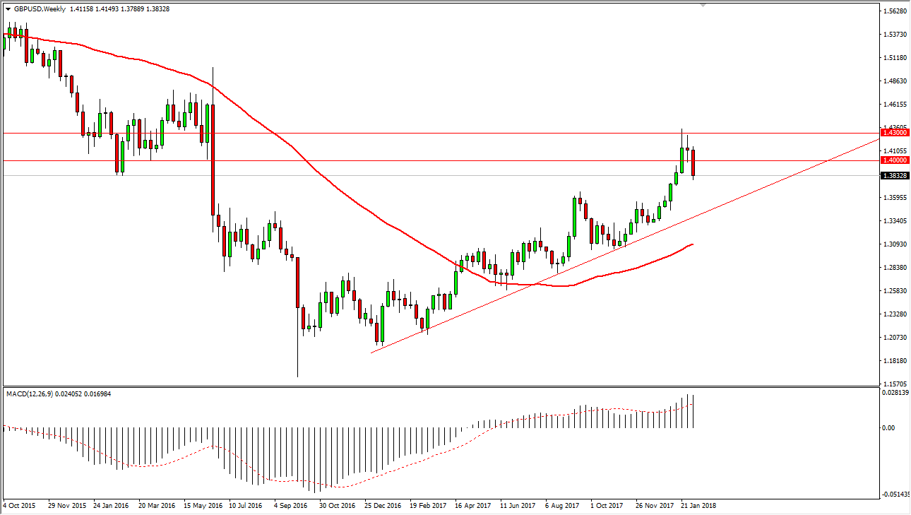 The British pound had a rough week, slicing below the 1.40 level rather handily. However, when you look at the longer-term weekly chart, you can see that there is a clear uptrend line that we have been following. The pullback from this area makes sense, because if you look towards the beginning of 2016, there was a lot of noise right around this area. The market is trying to wipe out the losses from the vote to leave the European Union, and quite frankly has done quite well along the way. I believe that longer-term “smart money” is looking at the British pound as cheap and has been collecting it since the end of last year. Clearly, at the very least the downtrend has been massively disrupted.