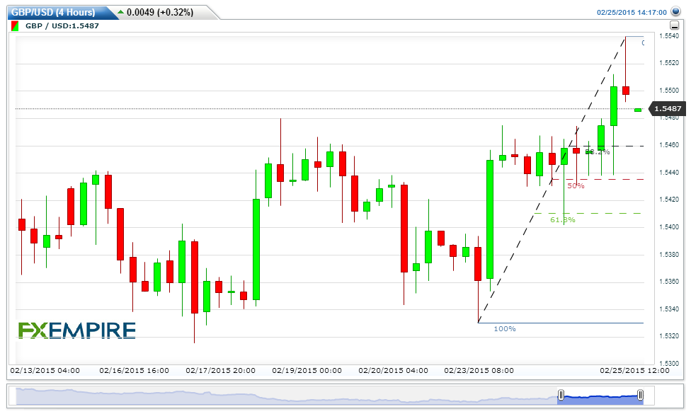 Tomorrow, GDP figures are expected for the UK at 09:30 GMT, where the annual growth rate for Q4 is expected to be 2.7%, unchanged from Q3. A higher than anticipated figure will be bullish for GBP-USD and could see the 1.5600 level tested. House price growth is also due and a high, positive reading will be bullish for the Pound. Total business investment is expected to pick-up from last month’s reading and is expected to come in at 1.9% Quarter on Quarter growth.