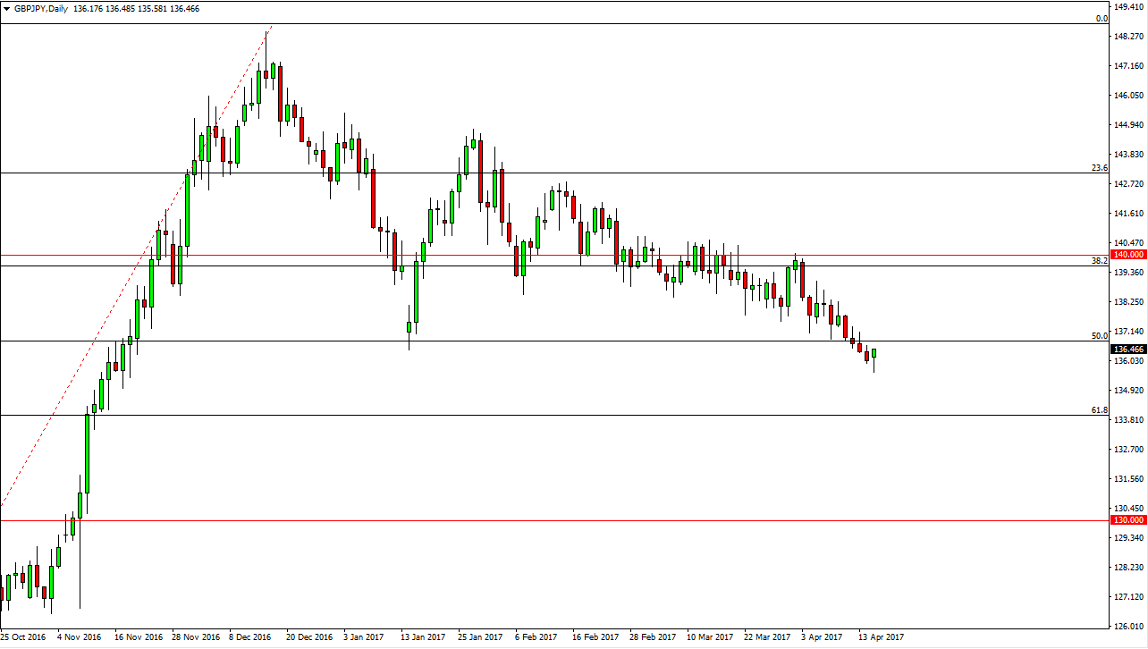 The British pound initially fell against the Japanese yen on Monday but turned around to form a hammer. Because of this, looks as if we are going to try and bounce, but we are most certainly in a downtrend and have certainly seen a breakthrough of resistance recently. Because of this, I’m waiting to see and exhaustive candle that I can start selling. I have no interest in buying currently, and I would also be a seller on a breakdown below the bottom of the daily candle for the Monday session. With this, I remain bearish.