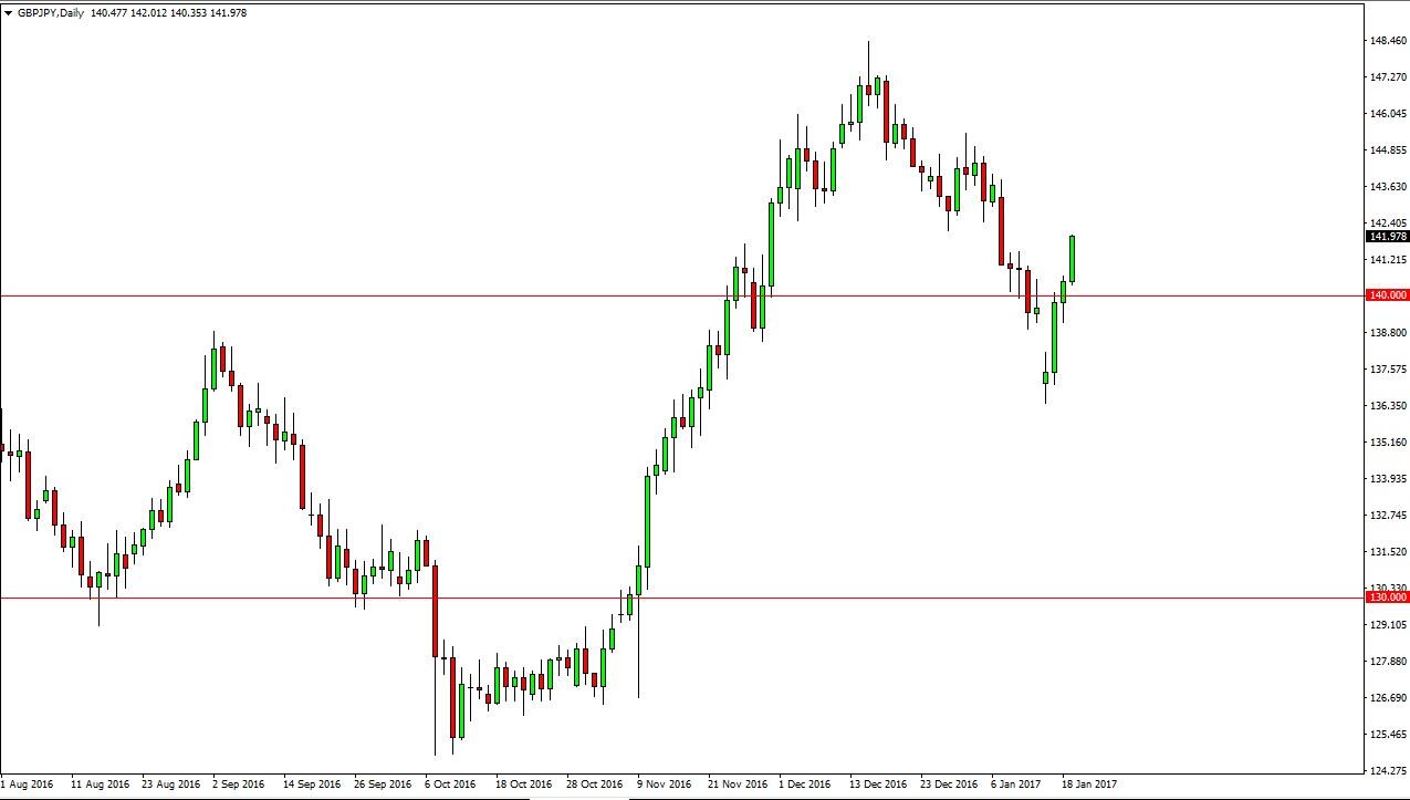 The GBP/JPY pair broke out to the upside during the day on Thursday, as we continue to see the Japanese yen gets sold off. Because of this, I am a buyer of this pair, and I believe that the 140 level should now offer a bit of a floor in the market. Given enough time, I believe that the market within reach towards the 148 level again, and eventually the 150 handle. The Japanese yen should continue to show signs of weakness, as the market shows signs of strength when it comes to currencies against the yen.