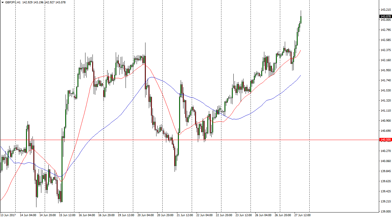 The GBP/JPY pair initially went sideways on Tuesday, pulled back slightly to reach towards the 142 handle, and then shot to the upside. The 143 level