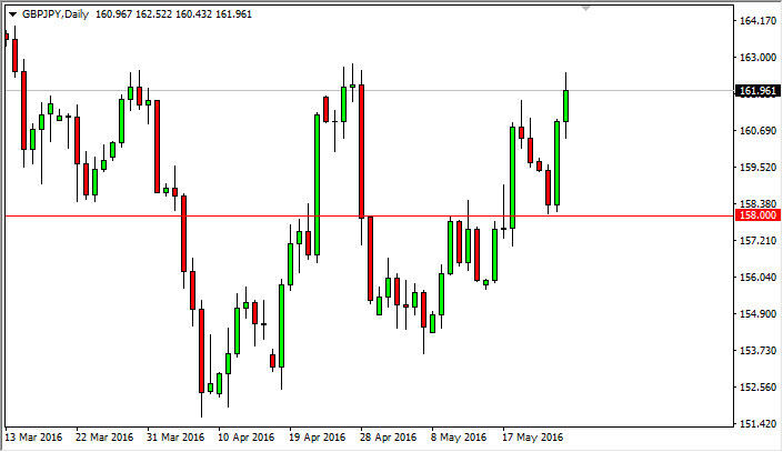 The GBP/JPY pair had a slightly positive session on Wednesday, as we tested the 162 handle. If we can break above there, the market could go much higher,