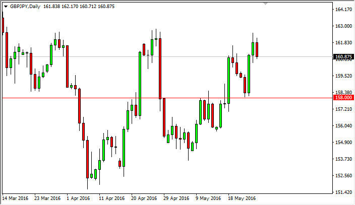 The GBP/JPY pair fell slightly during the course of the day on Thursday, as we found resistance yet again at the 162 handle. However, there is quite a bit