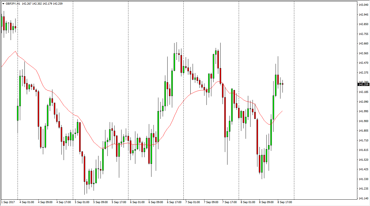 The GBP/JPY pair had a volatile session, initially falling, reaching towards the 141.25 level, but then bounced from there. We reached as high as 142.50, signifying just how choppy this market can be. The British pound has been very bullish in general, but this is also a very wrist sensitive market. That being the case, the market will probably follow equities, and in general looks to be bullish but I also recognize there is a gap from several sessions ago just above. Because of this, I expect a lot of choppiness over the next couple of days. As things stand right now, we are in a consolidation area.
