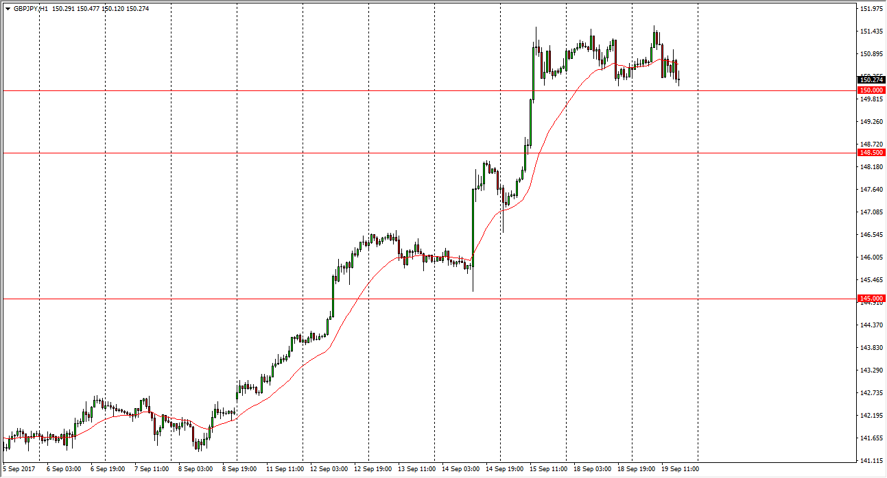 The GBP/JPY pair did very little during the day on Tuesday as we continue to hover just above the 150 handle. This is a psychologically significant level,