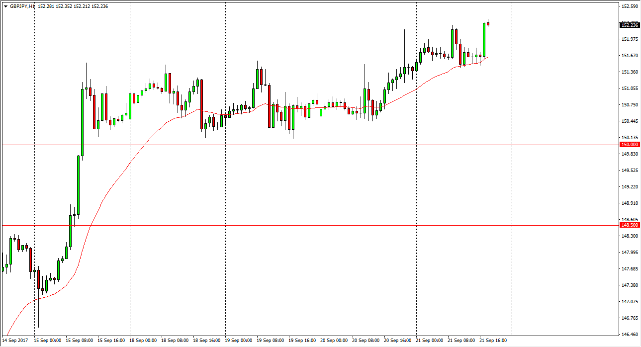 The GBP/JPY pair was choppy during the session on Thursday, but continues to show positivity in general. Because of this, I think that the longer-term