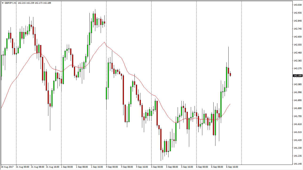 The GBP/JPY pair initially went sideways during the session on Wednesday, and then spiked as the British pound has seen significant buying lately. We rallied enough to touch the 142.50 level, which is the beginning of the gap. That Should be resistive, so it looks like we could roll over from here. Alternately, if we break above the 143 level, the market could find itself going much higher. I believe that the next session or so is going to be very important in this market, and you should keep in mind that the pair tends to be very sensitive to risk appetite around the world. Markets are going higher, it typically will as well. Alternately, if stock markets start to fall apart, this pair will fall.