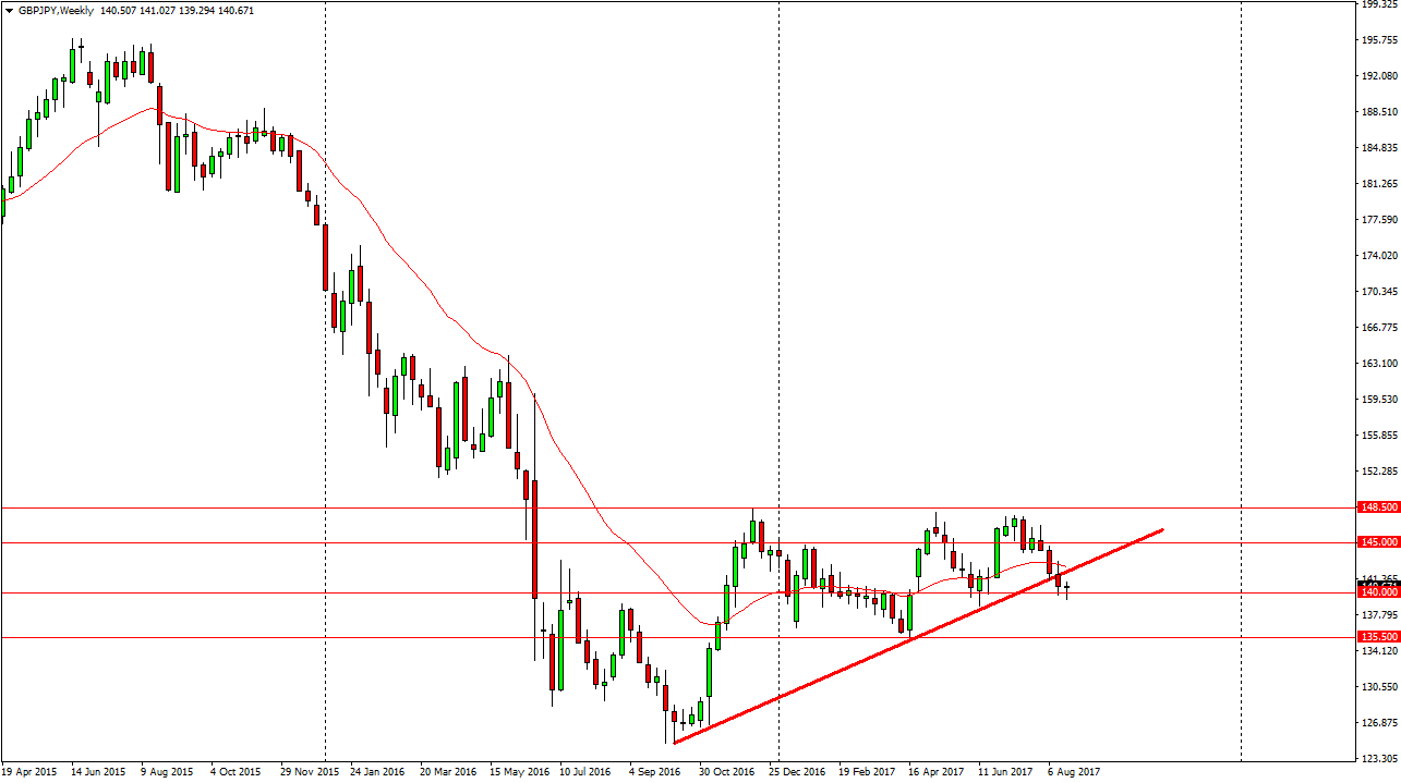 The British pound fell during the week against the Japanese yen, but bounced above the 140 handle. If we can clear the top of the candle, that would be a