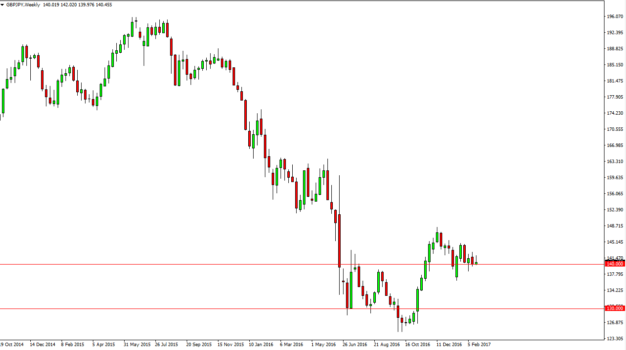 The GBP/JPY pair initially tried to rally during the week but turned around to form a shooting star. The shooting star sits on top of the vital 140 level,