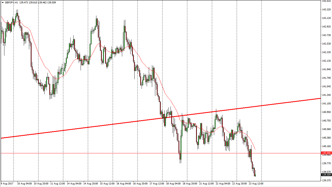 The GBP/JPY pair fell significantly during the day on Wednesday, slicing through the important 140 handle. It now looks as if we are trying to bounce back