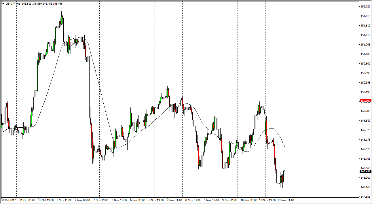 The British pound gapped slightly lower at the open on Monday, turned around to fill that gap, and then rolled over rather significantly. The 150 level