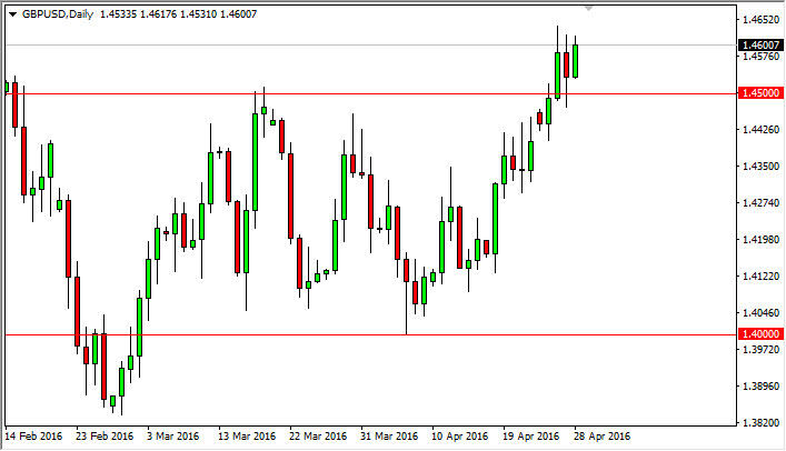 The GBP/USD pair rose during the day on Thursday, as we continue to see a bit of support near the 1.45 handle. Because of this, it looks as if we are trying to continue to grinder way higher, and with that being the case, could very well find yourselves looking for the 1.50 level over the longer term. I think that pullbacks will continue to be buying opportunities, and that support extends not only to the 1.45 handle, but perhaps as low as the 1.44 level. At this point, it is a “buy only” market.