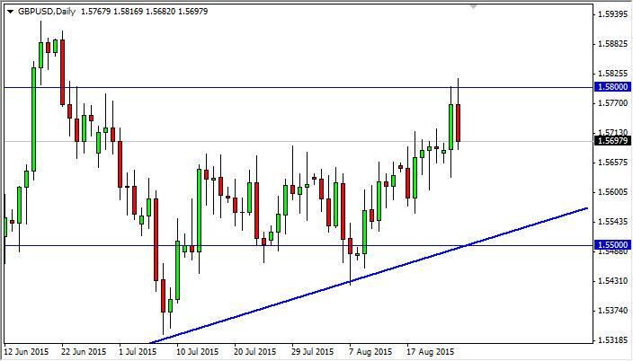The GBP/USD pair initially tried to rally during the course of the session on Tuesday, but found the 1.58 level be far too resistive. Because of this, we