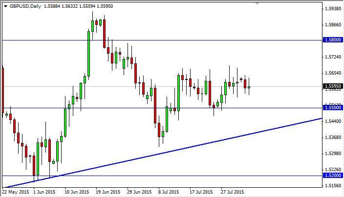 The GBP/USD pair went back and forth during the course of the day on Tuesday, essentially settling nothing. With that being the case, the markets look like they are going to continue to consolidate overall, with the 1.55 level being the bottom, and the 1.57 level above being the top. Ultimately, this market should have plenty of buying pressure underneath to push it higher, and with the Monetary Policy Committee Statement coming out during the session today that could be the catalyst to move the market higher. Regardless, we think the pullbacks offer buying opportunities as long as we can stay above the uptrend line.