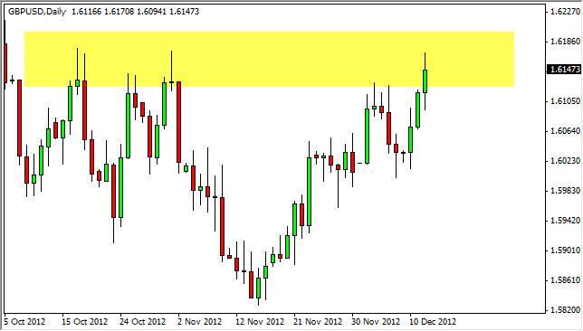 The GBP/USD pair had a bullish session on Wednesday as we attempted to break out above the 1.62 level. However, we did not manage to do so, and it looks