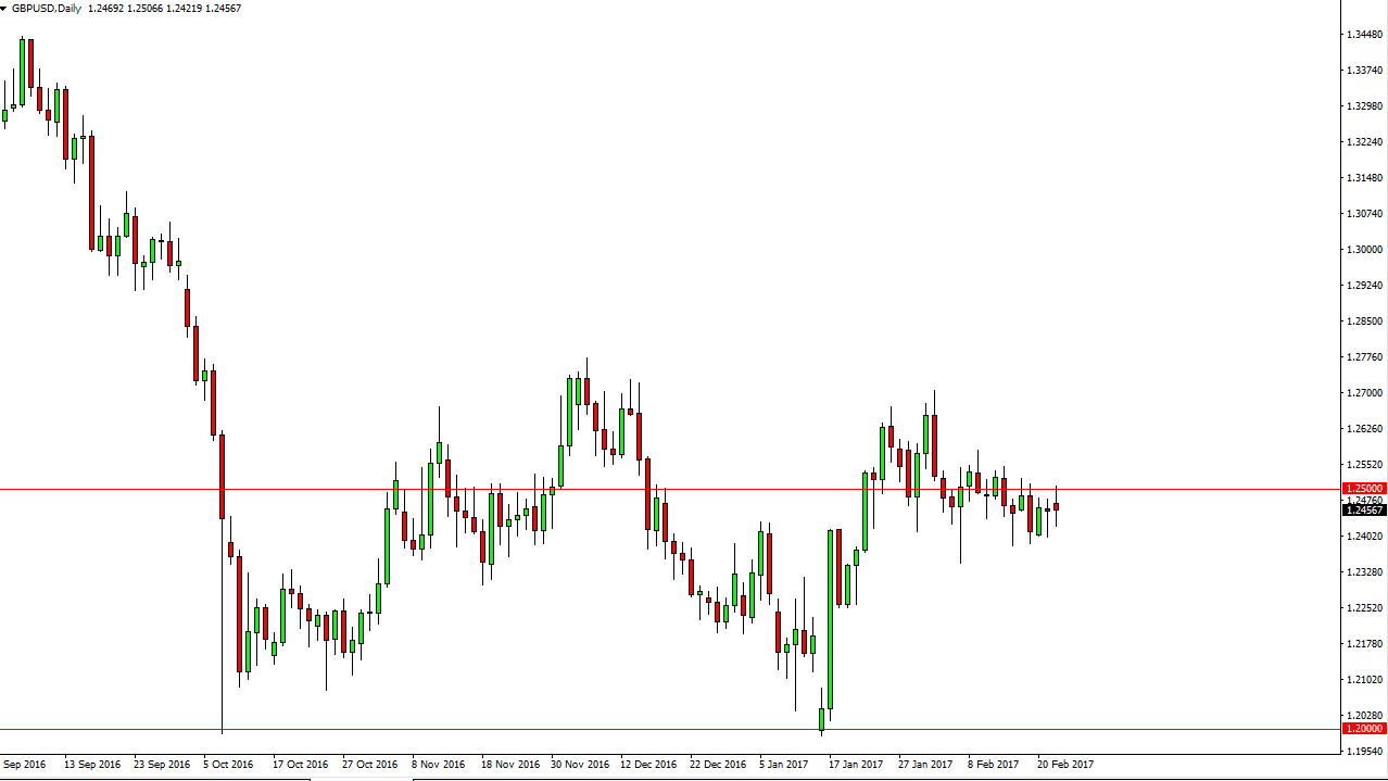 The British pound went back and forth during the day on Wednesday, testing the 1.25 level for resistance. We found that there again, but it just tells me