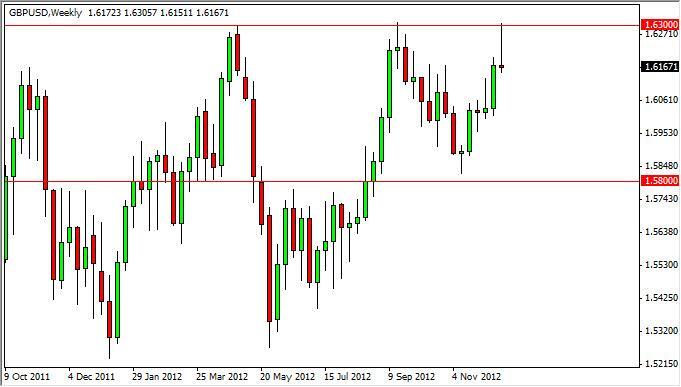 The GBP/USD pair initially rose during the week, slamming into the 1.63 handle. However, we found that level to be far too resistive and plunged back down
