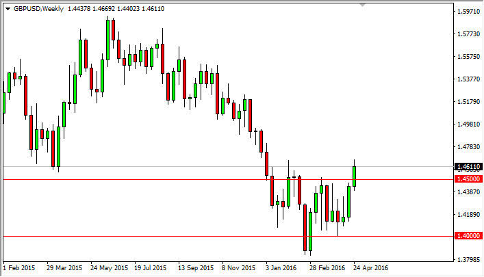 We do have the British voting in June on whether or not to stay in the European Union, so that of course will continue to be a little bit of a weight upon the British pound in general. Ultimately, this is a market that will also have to deal with the Federal Reserve and its lack of clarity on interest-rate hikes as well. It still appears that the Americans will raise interest rates later this year, but having said that it looks as if there will be interest rate hikes, so with this being the case at this point in time we will have to look to what both central banks will have to do. The British public will decide the fate of the British pound later this summer, but the Federal Reserve will certainly decide the fate of the dollar. It appears that traders are starting to look at the US dollar as a little less certain that once was as seen in other markets such as the gold markets rising. With this, we suspect that this pair will break out.