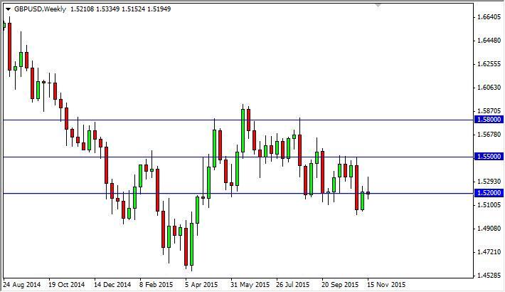The GBP/USD pair initially tried to rally during the course of the week, but turned back around to form a massive shooting star. The shooting star sits right at the 1.52 level, which of course has been previously supportive. Now it appears that we are ready to go lower, and a break below the bottom of the range for the week should send this market looking towards the 1.50 level next. Below there, the market should then reach down towards the 1.45 region again. The British pound will certainly looks a bit soft at this point in time, and as a result we have no interest whatsoever in buying this pair. This is especially true from a longer-term perspective, as it looks like the trend is definitely rolling back over again.