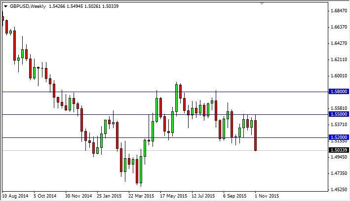 The GBP/USD pair initially tried to rally during the course of the week, but found the 1.55 level to be far too resistive. With that being the case, the market broke down below the 1.52 handle. Because of this, and the fact that we are closing towards the bottom of the candle suggests that perhaps we will continue to go lower. The 1.50 level is just below, so that could cause a little bit of a bounce, but at this point in time we think that would only end up being a selling opportunity as the us dollar is favored.