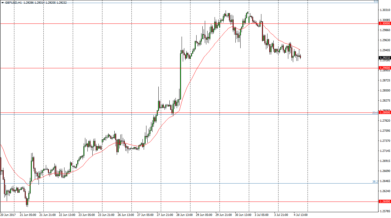 The British pound went sideways during the day on Tuesday, as we continue to see choppiness with a slightly negative bias. I think that the 1.29 level underneath should be supportive though, and as we start to get volume coming back into the market today after the American Independence Day holiday. The FOMC Meeting Minutes coming during the session can also have an influence on this market, as it will give us an idea as to how hawkish the Federal Reserve has become. The market should continue to be very choppy, as we are concerned about the negotiations between the United Kingdom and the European Union. As long as headlines continue to come out, there’s the possibility that the British pound is rapidly and without warning.