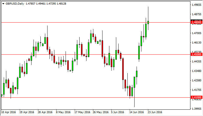 The GBP/USD pair initially rallied during the day on Thursday but found enough exhaustion above the 1.48 level to turn and form a nice-looking shooting star. This is a currency pair that will be very sensitive to whatever announcement we get coming out of the United Kingdom as far as the EU referendum is concerned today, so keep that in mind. A vote to stay within the European Union will be positive for the British pound, while a vote to leave will be negative. At this point in time, and looks as if it’s as simple as that.