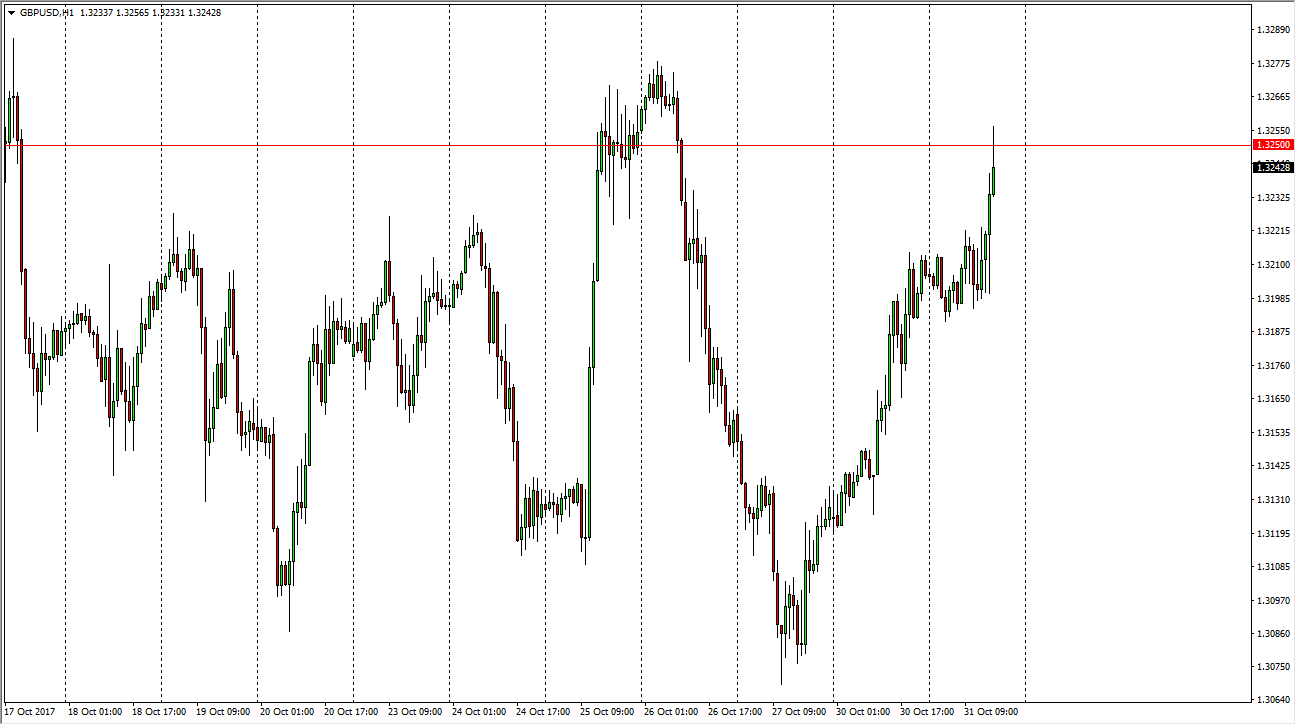The British pound went sideways initially during the day on Tuesday, but then shot much higher, reaching towards the 1.3250 level. If we can make a fresh,
