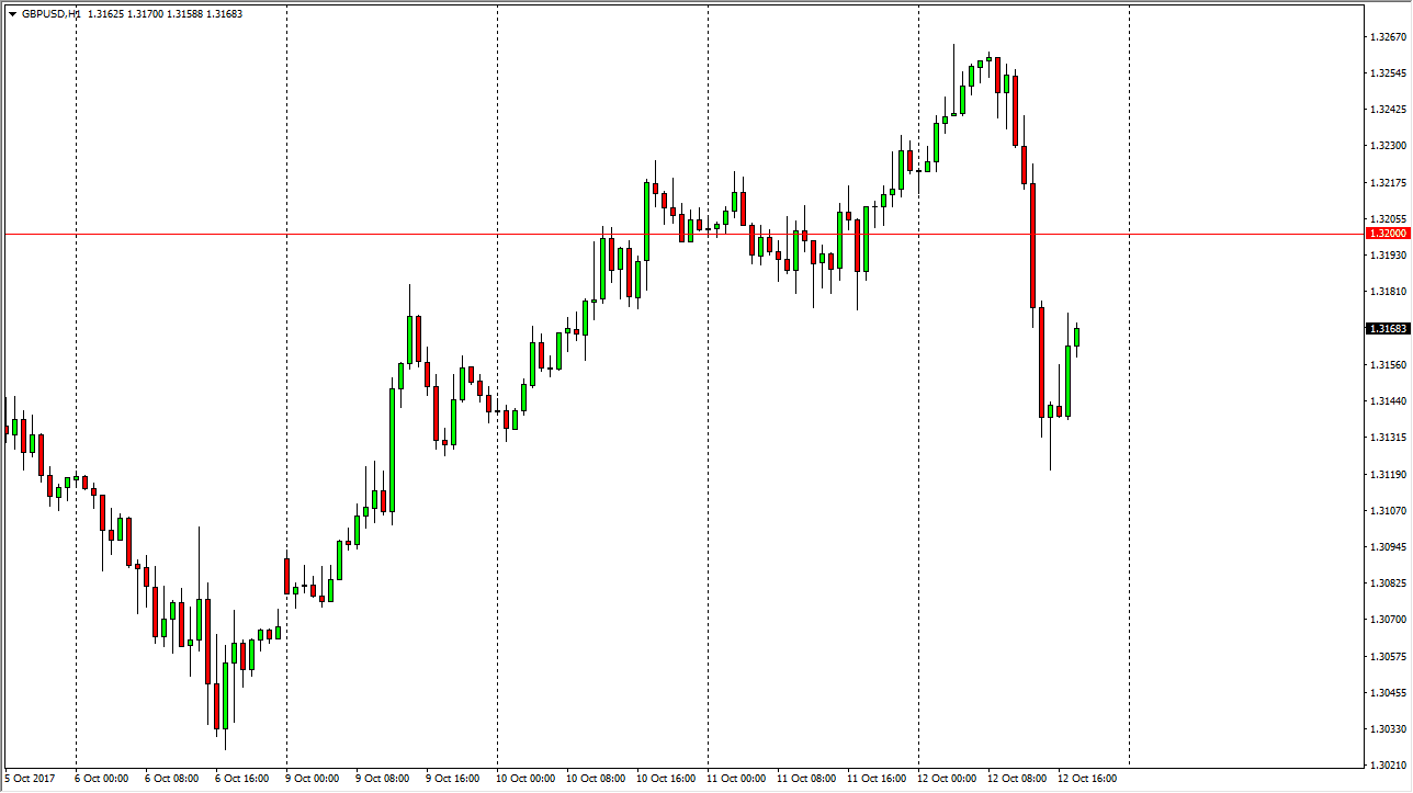 The British pound struggle during the Thursday session, as we had initially rallied, but then broke down significantly. We cleared the 1.32 level to the