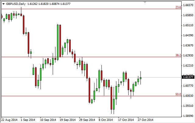 The GBP/USD pair went back and forth during the day showing quite a bit of volatility, but in the end formed a very neutral candle. Because of this, we feel that the market is probably waiting on the statement coming out of the Federal Reserve, and as a result it’s a little bit difficult to imagine what the market is going to do ahead of time. We do think that a sustained move above the 1.62 level is a buying signal though, and that’s quite frankly we were hoping for. In the meantime, we will be patient.