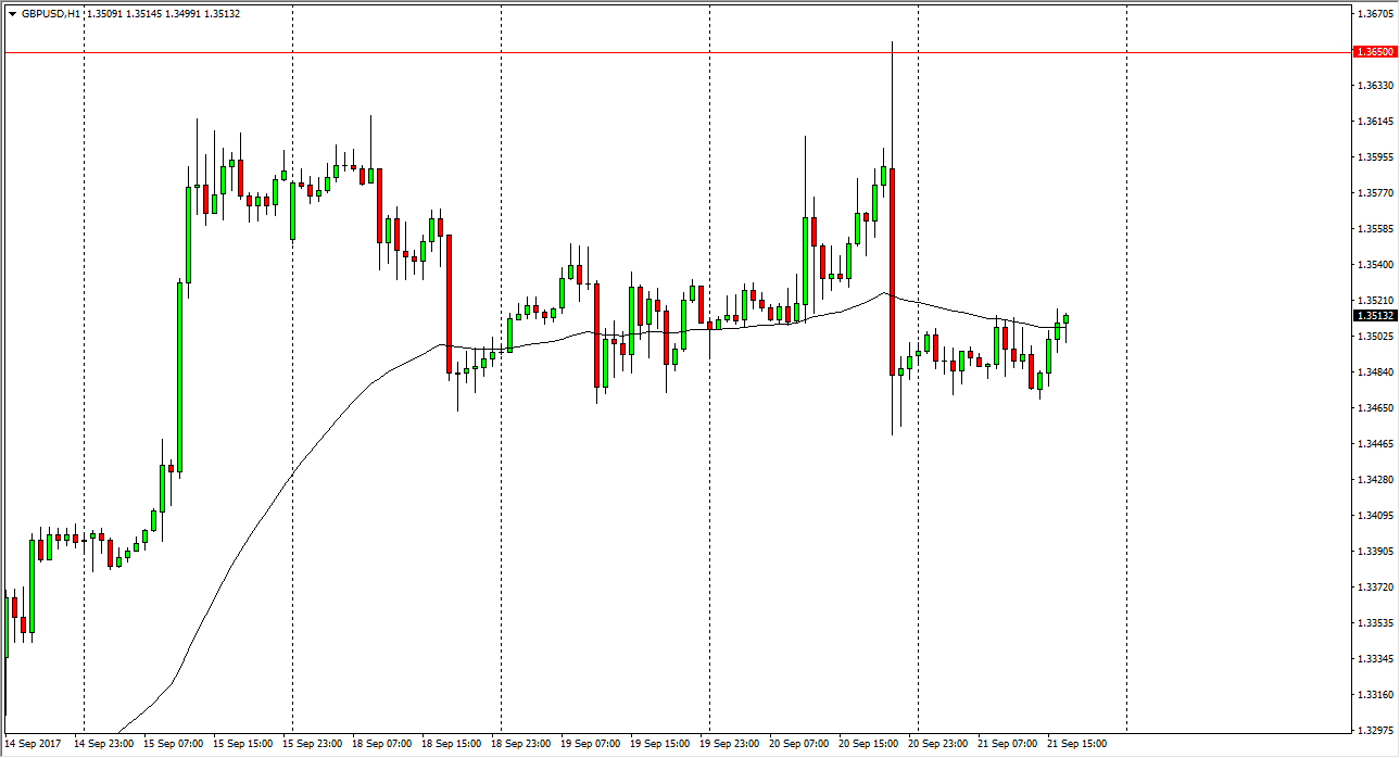 The GBP/USD pair continues to be very volatile, as we have gone sideways in a tight range during the day on Thursday, testing the 1.35 level. I believe that the market should continue to be choppy, and I recognize that the noise that we see in this market is due to the Federal Reserve, and of course the outlook for the British pound and the interest rate outlook for Great Britain. Ultimately, this market should continue to be one that goes back and forth, and I think that short-term trading is probably the best way to go. However, if we broke above the 1.3650 level on a daily close, the market should continue to go much higher. That is a break above the gap from the Brexit vote, and of course is a significant turn of events and should continue to point towards higher levels.