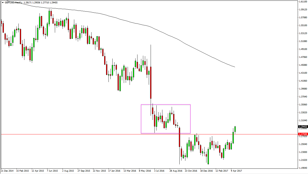 The GBP/USD pair broke out during the week, clearing the 1.2750 level. That being the case, I think that the market is going to reach towards the top of
