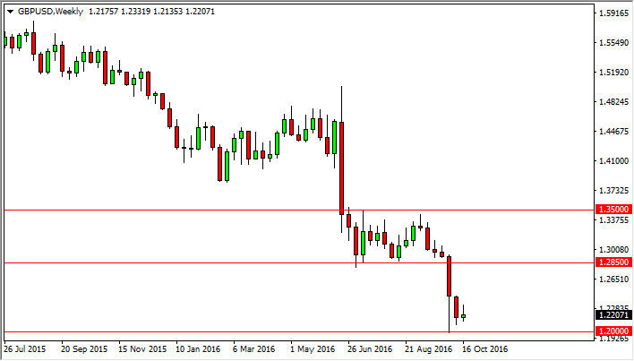 The GBP/USD pair went back and forth during the course the week, and ended up forming a less than impressive candle. If we break above the top of the range during the course of the week, it’s very likely that we continue to go higher, but I still think that the 1.2850 level is a bit of a ceiling. Because of this, it’s likely that the market will continue to be negative overall. With this, I feel much more comfortable shorting on signs of exhaustion or break down below the 1.20 level which should be massively supportive.
