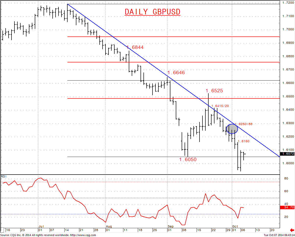 The Friday break below the 1.6050 low and the 50% retrace at 1.6005, psychological 1.6000, leaves risk still lower into this week.